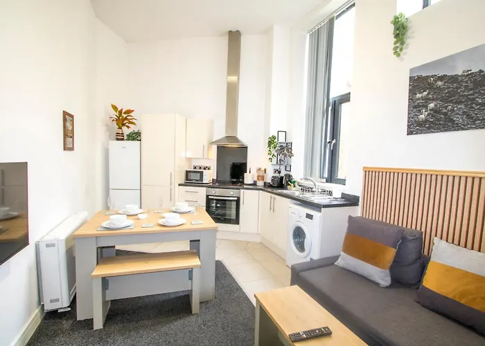 A fully equipped kitchen is provided at the accommodation Travellers can also enjoy their meals in the pizzeria Miami Pizza, which is merely 1.1 km away. Manchester airport is located at the distance of 20 km from Sleek 2 Bedroom - Stadium Links apartment.